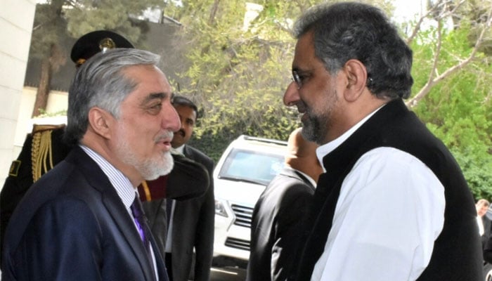 بعد ازاں وزیراعظم شاہد خاقان عباسی کابل میں افغان چیف ایگزیکٹو عبداللہ عبداللہ سے ملاقات کے لیے ان کے محل پہنچے جہاں عبداللہ عبداللہ نے پاکستانی وزیراعظم اور ان کے وفد کا گرم جوشی سے استقبال کیا۔